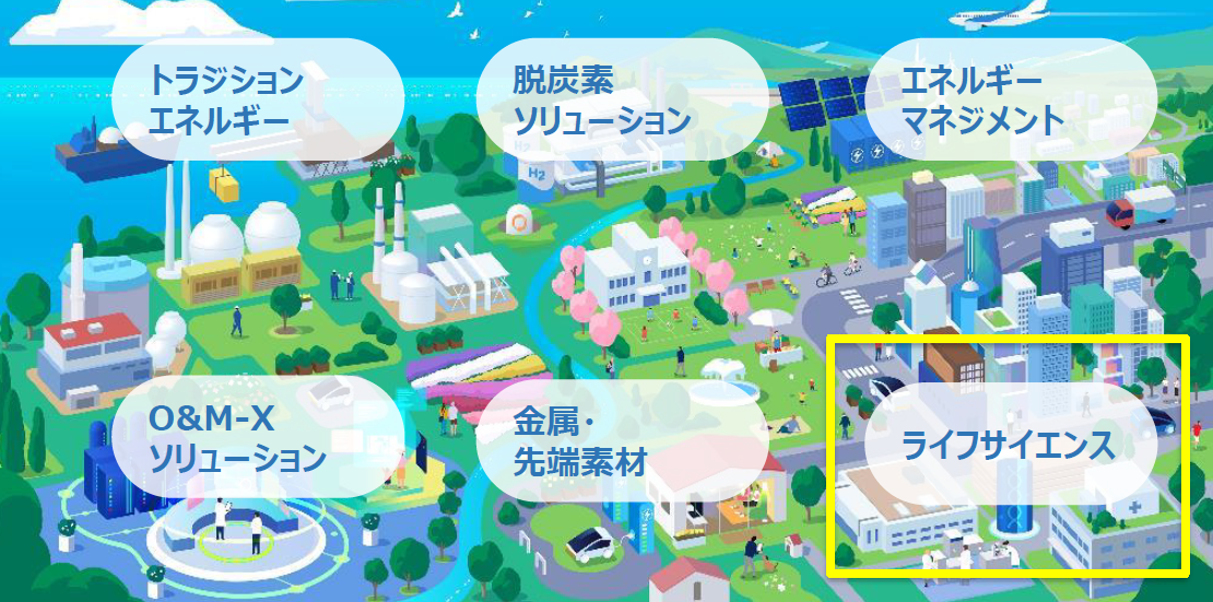 当社グループは、トランジションエネルギー、脱炭素ソリューション、エネルギーマネジメント、金属・先端素材、ライフサイエンス、O&M-Xソリューションの6つの事業を通して、人と地球の持続的で豊かな未来を創ります。