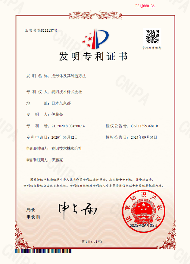 このたび、弊社が出願しておりました「成形体およびその製造方法」について