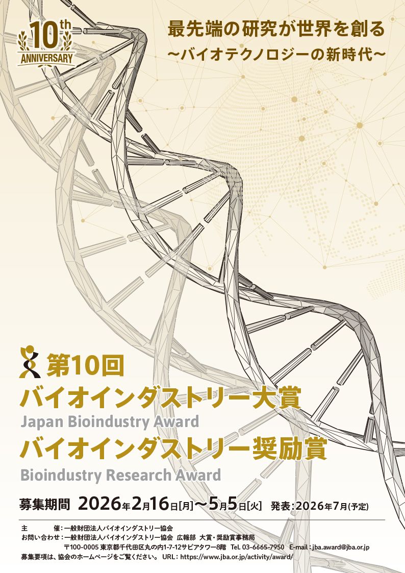 | バイオインダストリー大賞 2026年度・第10回募集要項(大賞)はこちら >> | |