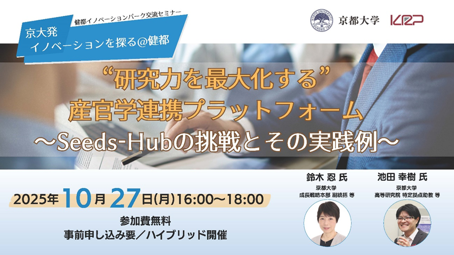 - 【無料セミナー】“研究力を最大化する”産官学連携プラットフォーム ~Seeds-Hubの挑戦とその実践例~