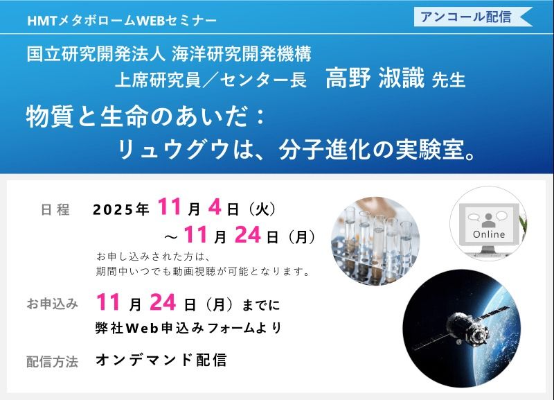 - 2025年11月開催 アンコール配信 国立研究開発法人 海洋研究開発機構 高野淑識先生 特別講演 「物質と生命のあいだ:リュウグウは、分子進化の実験室。」