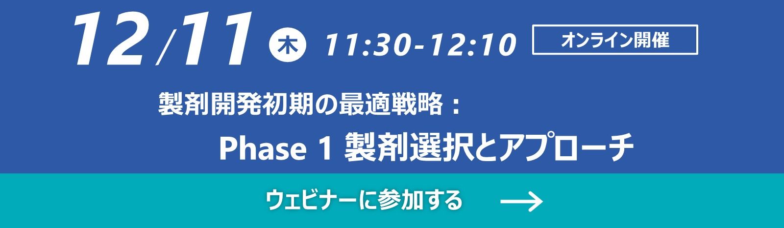 - 【スペラウェビナー 12/11開催】 製剤開発初期の最適戦略:Phase 1 製剤選択とアプローチ