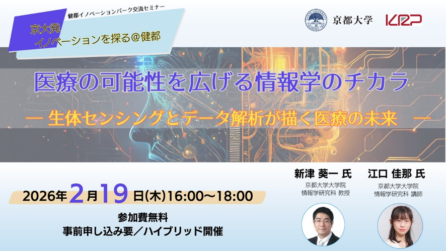 本イベントでは、「情報学の医療への貢献」をテーマに、生体センシング技術と医療データ解析の両面から研究を進める京都大学大学院情報学研究科の研究者2名をお迎えします。半導体集積技術を基盤とした非侵襲センシングの研究と、生体信号解析・医療情報学の研究、それぞれの視点から、情報学が医療の現場にどのような技術的進展をもたらしているのか、そして現在どこまで実現しているのかについてご紹介いただきます。