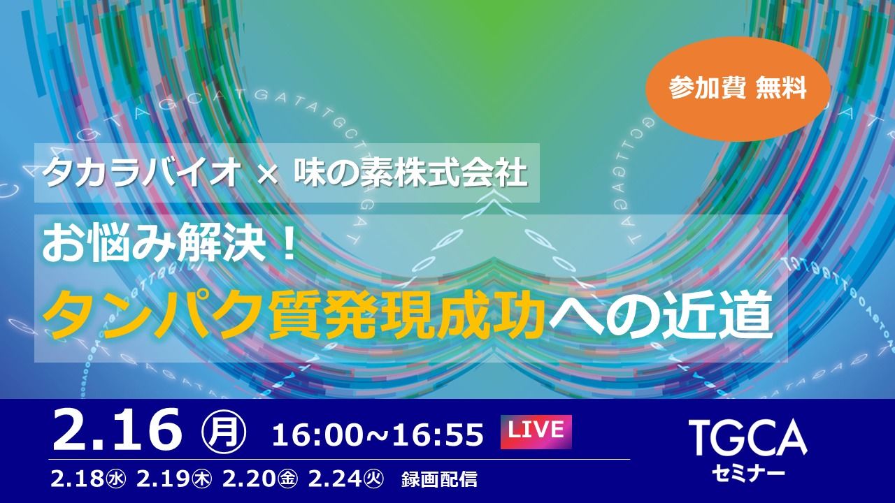 本セミナーでは、味の素独自のCORYNEX®プラットフォームを活かしたタンパク質医薬品の開発・製造技術、ならびにタカラバイオのタンパク質製造受託サービスについてご紹介いたします。