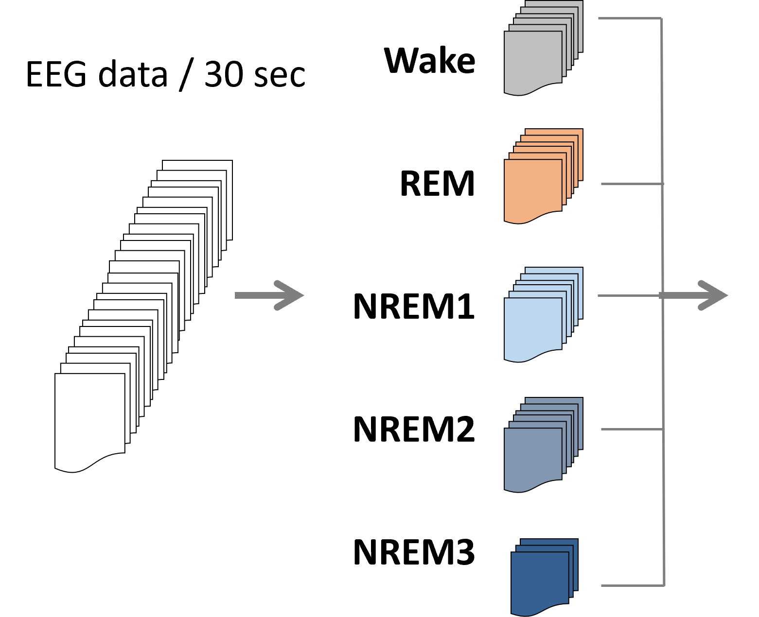 ひと晩の脳波計測 | 30秒毎のデータを国際基準のルールに従い 5つのステージに分類 |