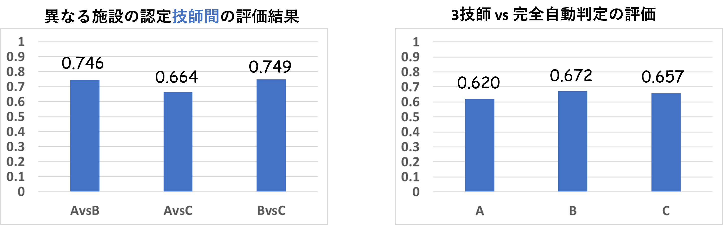 ■κ係数(0.6以上が信頼に足るとされる) 40dataのステージ判定結果の比較