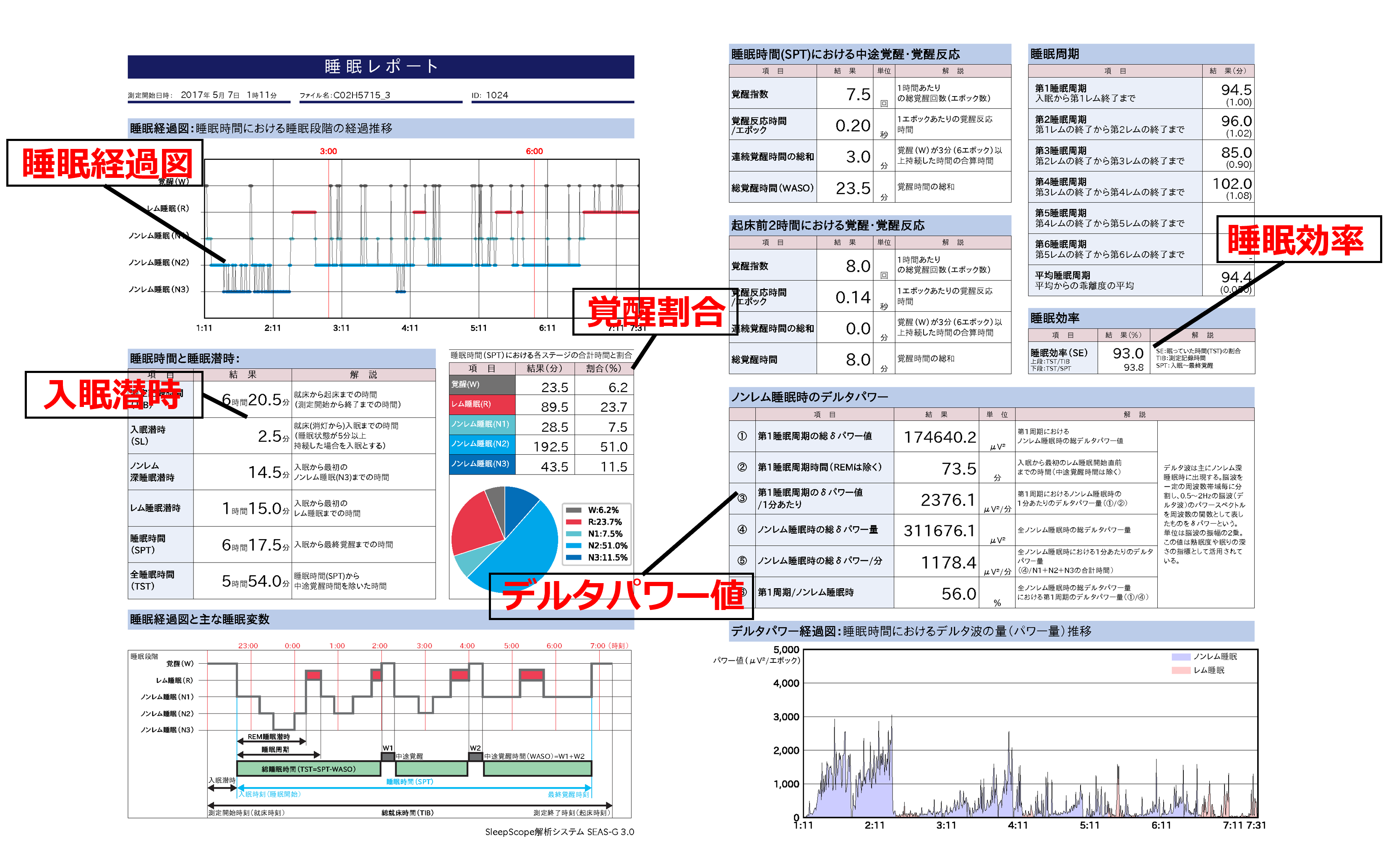 解析結果のアウトプット -48の睡眠指標をご提供-
