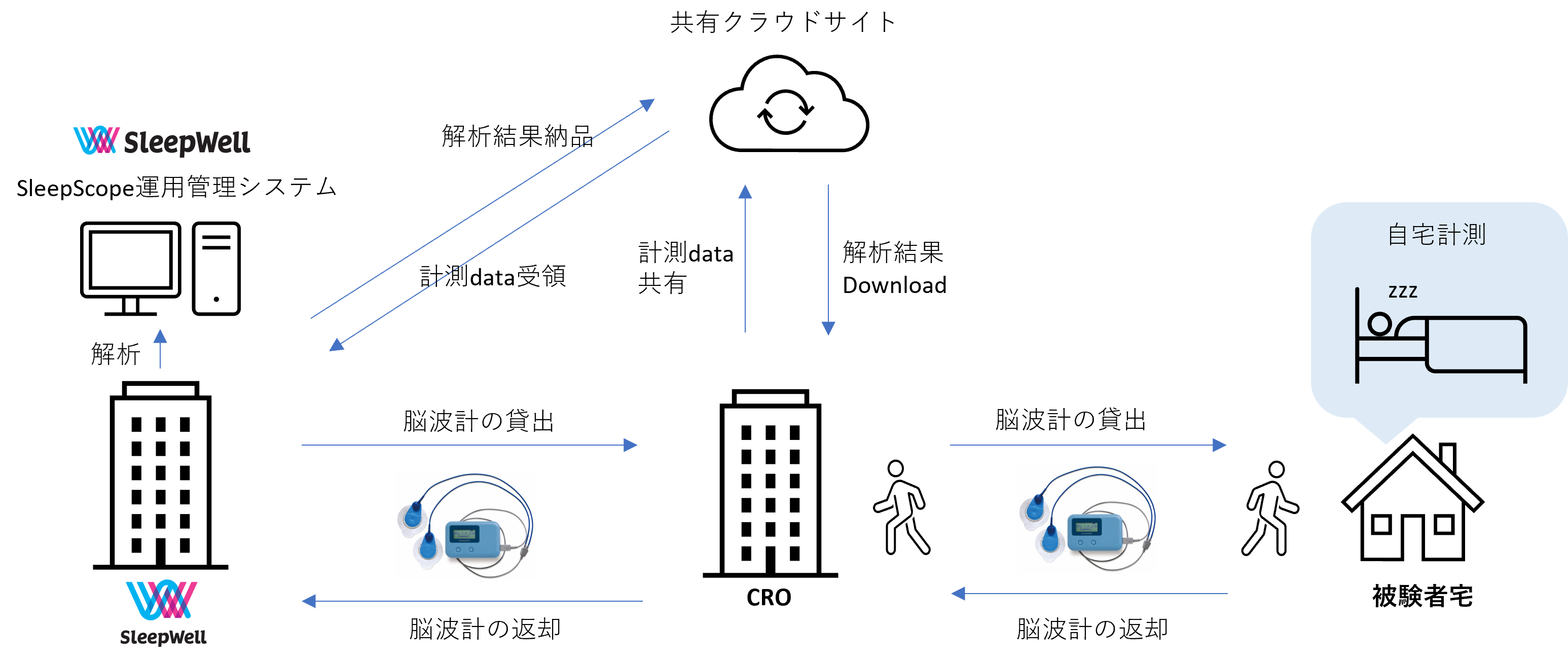 - 計測データをCROがファイル共有サービスを介してSWに共有