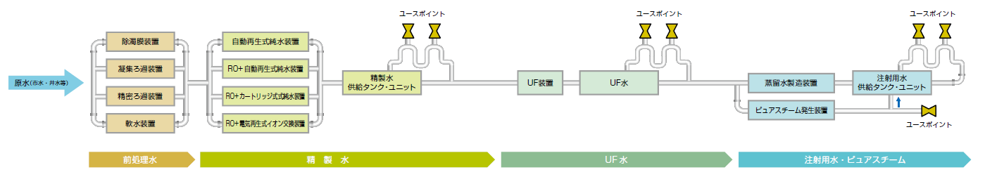 - ご要求水質( JP、USP、EP、精製水、注射用水 他)