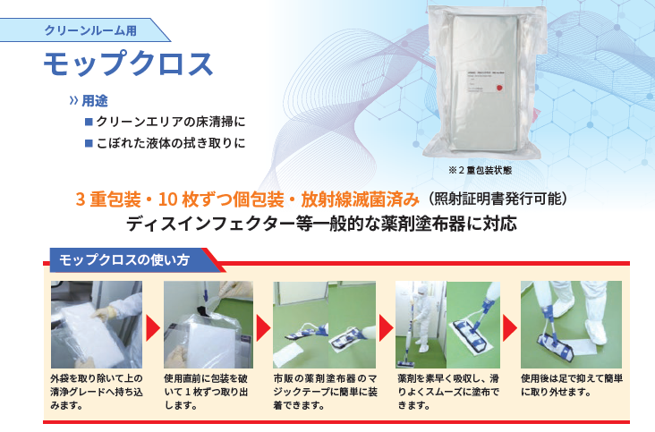 多重包装・滅菌済み クリーンルーム用清掃用具