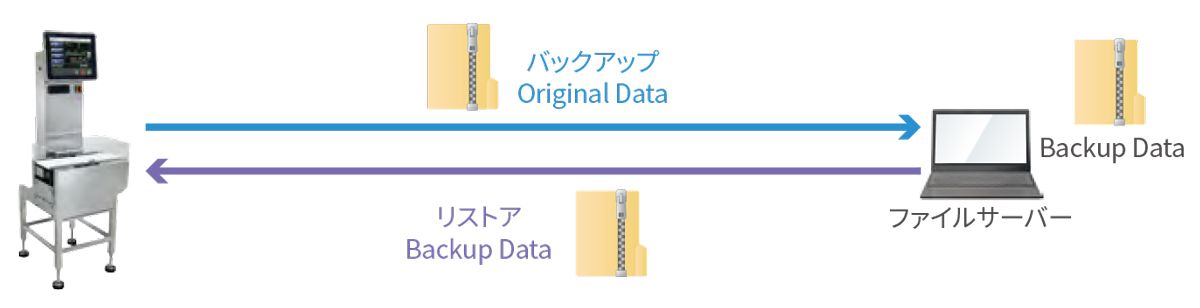 データやパラメータのバックアップ・リストア機能検査機のメモリが破損した場合など、各種データや機器のパラメータ設定値のバックアップ・リストア(復元)をEthernetを介して簡単に行えます。 |