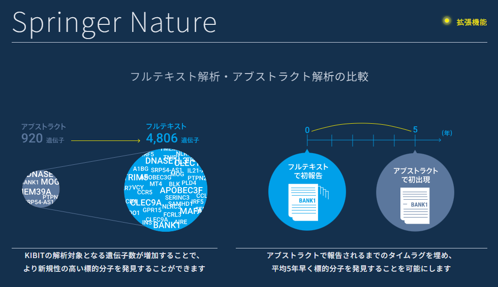解析対象の論文データはPubMedが中心で、Springer Natureの論文データをオプションで加えることができます。