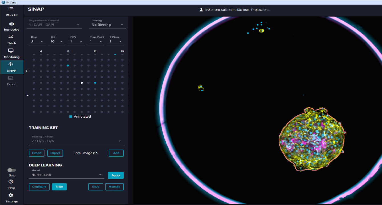 IN Carta® 画像解析ソフトウェアは、機械学習を活用して難解なアッセイからでも信頼できる洞察を提供し、すべての研究者が高度な解析を利用できるようにします。MetaXpress Acquire ソフトウェアとのシームレスな統合により、画像取得からデータ解析と洞察に至るまでの単一かつ効率的なワークフローが実現します。