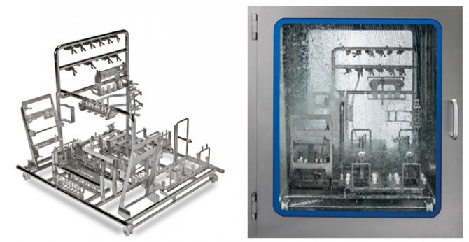 IWTが提供する200 EVOは、医薬品製造においてAPI等プロセス流体と接するパーツを製造設備から取り外して洗浄する際、非常に効率的かつ容易に洗浄する事が可能です。