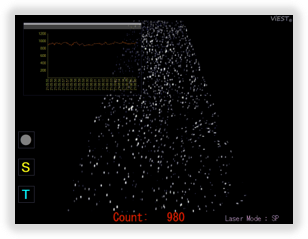 微粒子の可視化映像と計数値は、コントローラにプリインストールされている専用ソフトを介して、リアルタイムでモニターに表示されます。