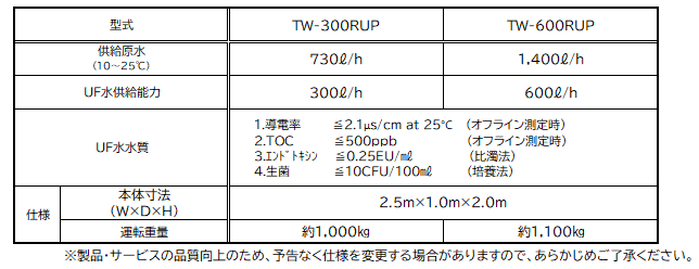 UF水製造装置 TW-RUPシリーズ(小流量タイプ)