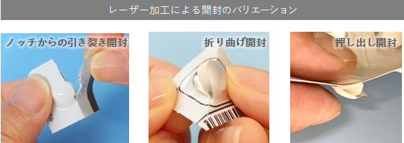 - インラインでのレーザー加工により開封しやすく、PTPより柔らかいため、誤飲した際に食道を傷つけるリスクを低減します。
