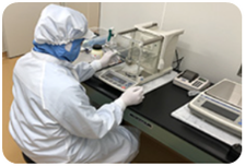 2.原料秤量 mg単位からkg単位まで正確に 量り取ります。 |