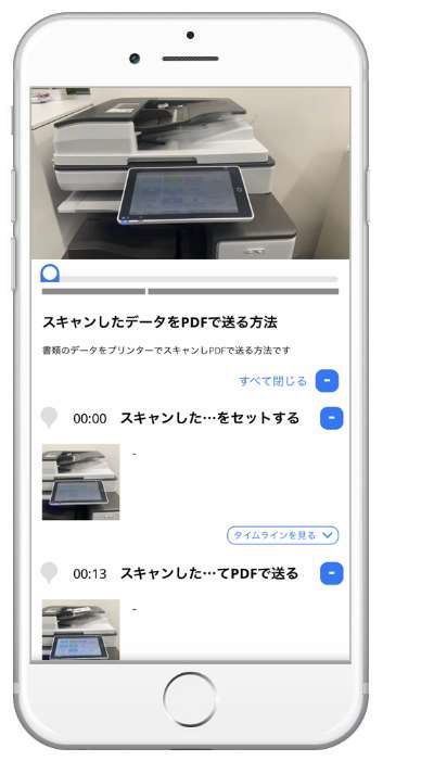 スナップショット感覚で撮影するだけで、簡単に「やりかた」(技能)映像を作成し社内に共有(技能継承)できる、やりかた(技能)蓄積・共有ソリューション